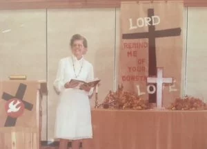 In 1978 Mae worked tirelessly to bring together people from a diversity of denominational traditions to create Plura Hills United Church, in Kamloops and she was their first minister. Donna Greely wrote, “Mae was our pastor, but as well, she was our spiritual leader, our friend, our confident, our counsellor … she reminded us we also had a responsibility to react in an ethical way. … [her] strong belief in Social Justice and that Jesus was a political figure led many of us into looking at our faith and lives in a much closer, responsible way than we had previously.”